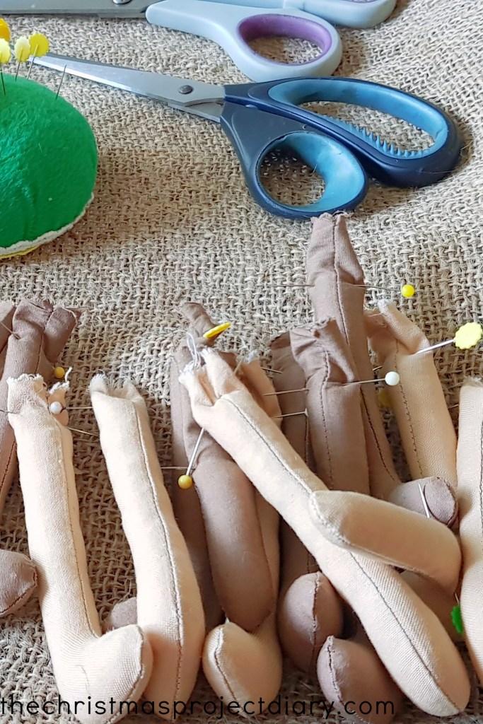 Small tiny angelic arms and legs being filled with polyester stuffing takes time. We have knitting needles and scissors on hand to help us as required.