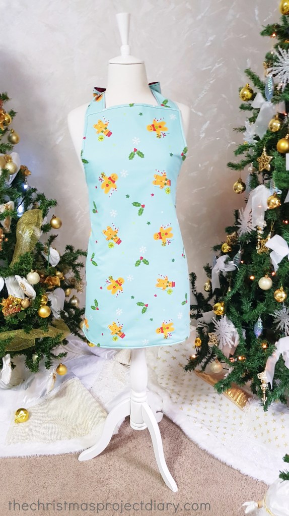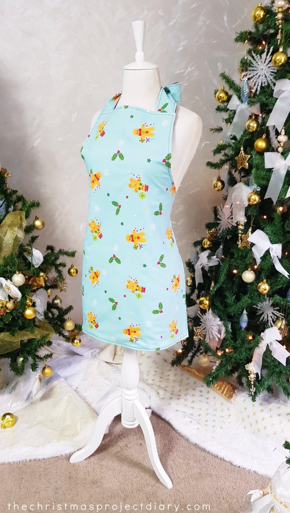 The main fabric of course for this apron was that sourced from the Christmas themed duvet cover that I repurposed (I shared about how this was a great charity shop find in my previous blogpost). This particular apron was constructed from the duvet cover panel side that clearly had the gingerbread characters on it. I have enough material to make two aprons in total from this particular panel. I will be working on the second gingerbread apron very soon.